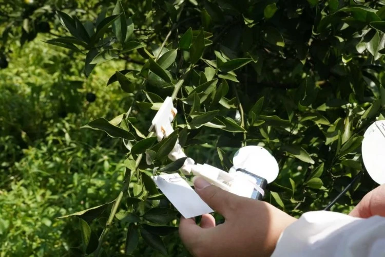 在烈日酷暑下,由四名博士生带领一众硕士研究生、本科生,重点针对沙糖桔种植过程中的黄龙病防治等关键技术难题,开展了沙糖桔产量与冠层航测、柑桔病害无人机防治、无人机施药效果地面检测设备验证等研究内容。