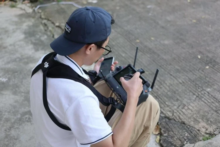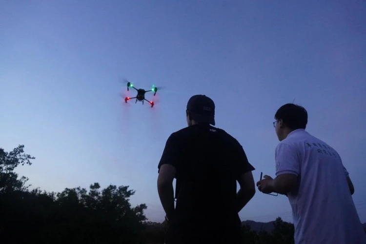 ▲图为两位博士生使用植保无人机和热成像专业无人机在进行实验