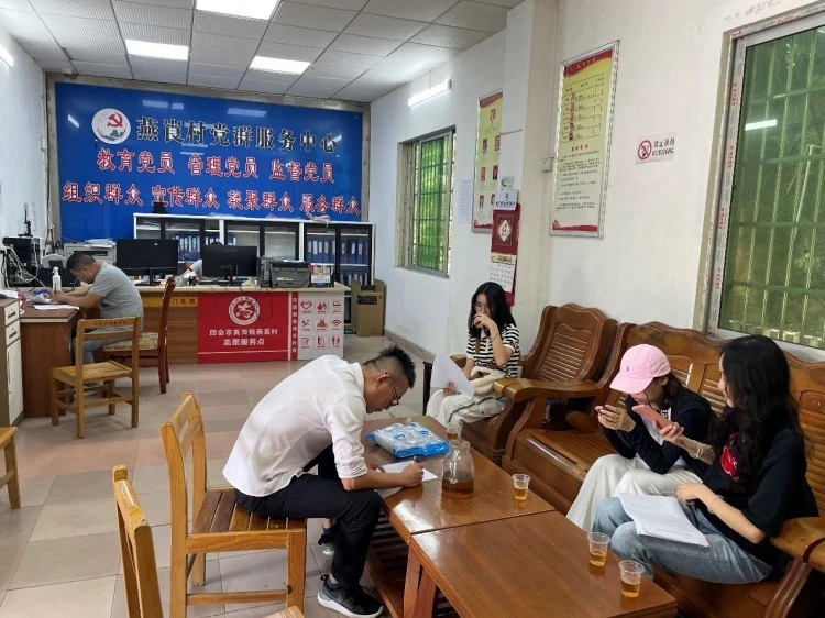 ▲图为博士团来到燕莨村调研,村委亲切地邀请成员们喝茶聊天