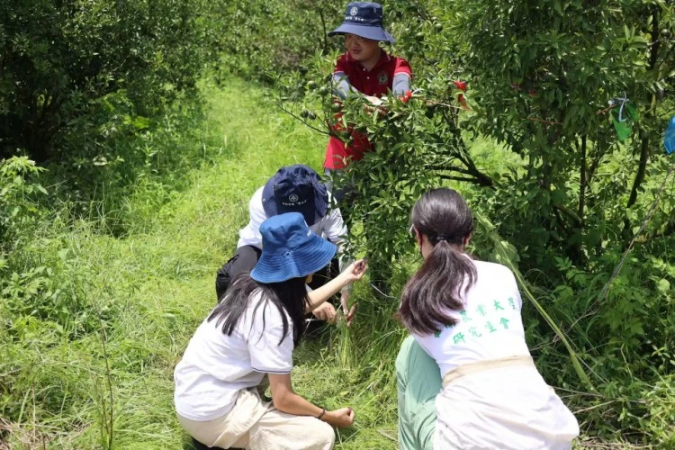 博士团此次“三下乡”活动由4 名博士研究生担任技术骨干,本硕博学生组成跨学科队伍,涵盖9 个学院,学生党员占比超过一半,另有校研究生会和学生会骨干积极参与,形成“专家领衔、博士支撑、本科参与”的人才结构。成员中学生党员和骨干带头攻坚,带动青年深入田间地头,把“科技助农”与“思政育人”紧密结合,形成了一堂生动的“科技思政课”。团长秦英栋表示,早在2021年,团队已进入黄田镇开展沙糖桔病虫害研究,依托园区数据和场地累计产出 SCI 论文6篇,研究成果涵盖无人机施药优化、病虫害识别和树体表型提取。