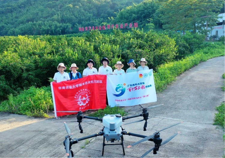为深入贯彻落实广东省“百千万工程”决策部著,推动低空经济与智慧农业深度结合,在2025 年实现“三年初见成效”的总体要求下,8 月8 日至11 日,华南农业大学“绿航智能”博士团“百千万工程”突击队奔赴肇庆市四会市黄田镇,开展科技助农社会实践“三下乡”活动。博士团依托华南农业大学电子工程学院(人工智能学院)(以下简称电智学院)和国家精准农业航空施药技术国际联合研究中心(以下简称中心)成立,由电智学院博士生秦英栋担任团长,由国家特聘专家、中心主任和首席科学家兰玉彬教授领衔,学校思政教师陈亚励与青年专业教师陈鹏超副教授共同指导。他们深入田间地头,结合科研与实践,为乡村振兴赋予“高学历+高科技”双引擎动能。