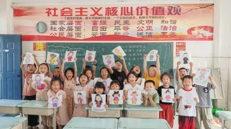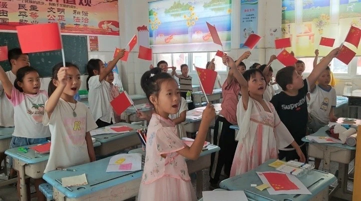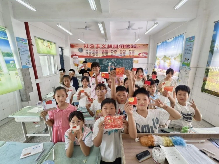 在“红色故事会”课堂上,当支教老师讲述五星红旗的故事时,孩子们的眼睛亮如星辰,那是一颗正在萌芽的爱国种子。“起来,不愿做奴隶的人们…”,平时调皮捣蛋的孩子们,此刻小脸绷紧,右手举过头顶,指尖微微颤抖,唱着国歌的声音却坚定不移,那些关于家国情怀的种子,就这样落在童言童语里,静待破土。