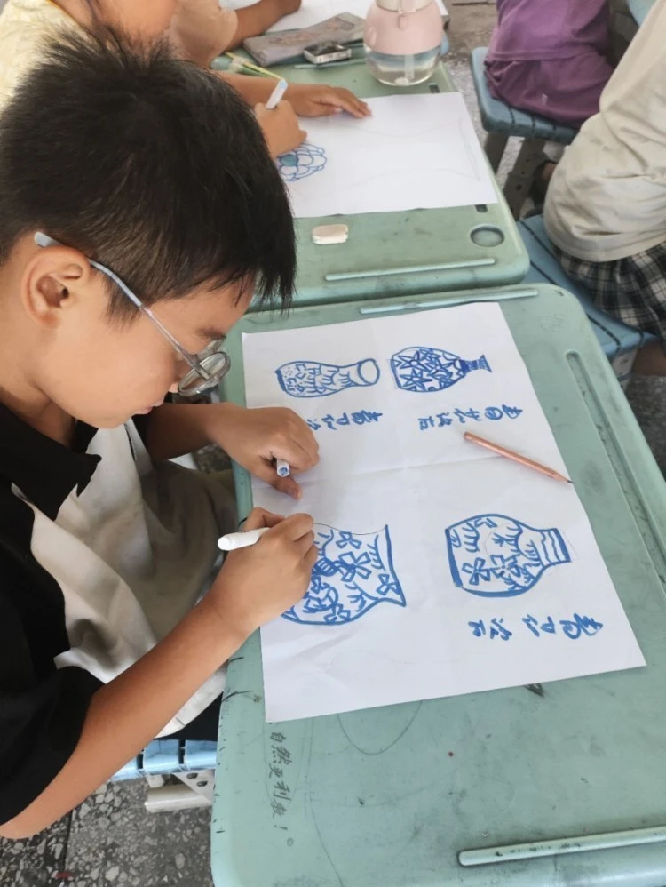 艺术课是色彩与想象的狂欢,孩子们在美的熏陶中提升审美能力。青花瓷绘制课上,孩子们执笔勾勒传统纹样,钴蓝色在一张张白纸上晕染开来。民族服饰课上,彩纸变盛装,巧手画霓裳,他们绘出不同民族的服饰,在七彩布料间读懂中华文化的绚烂篇章。