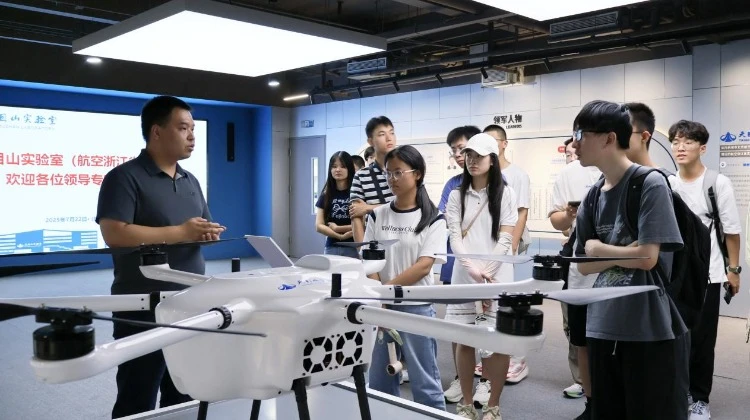 在滨江区北航杭州创新研究院,同学们对空地一体化管控平台产生了浓厚兴趣。“如何对未报备飞行器进行监测管控?”对于平台运行中可能遇到的问题,同学们做出了提问,并获得了专业的解答。而在北航杭州国际校园,同学们又找到了另外一个解法:“天目山二号”子母无人机,它可以进行空中巡查并通过子机执行具体任务。这样的参观学习,让同学们深刻认识了科技创新成果转化的重要性,将所学知识与产业发展和社会需求相结合的重要性。