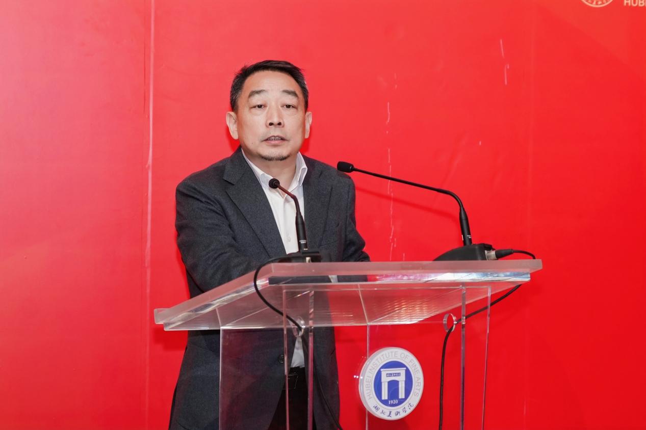 湖北美术学院党委副书记、院长周峰在致辞中指出,本次海报设计展通过艺术的方式铭记抗战历史、弘扬伟大抗战精神。他回顾了湖美人在抗战时期坚守“艺术救亡”初心,强调这片土地承载着深厚的抗战记忆。展览作品以视觉语言再现历史、呼唤和平,展现了新时代艺术工作者的使命与担当。他期望青年设计师能从展览中汲取精神力量,将个人艺术追求融入国家发展大局,用创意与担当为文化强国建设和民族复兴贡献青春力量。