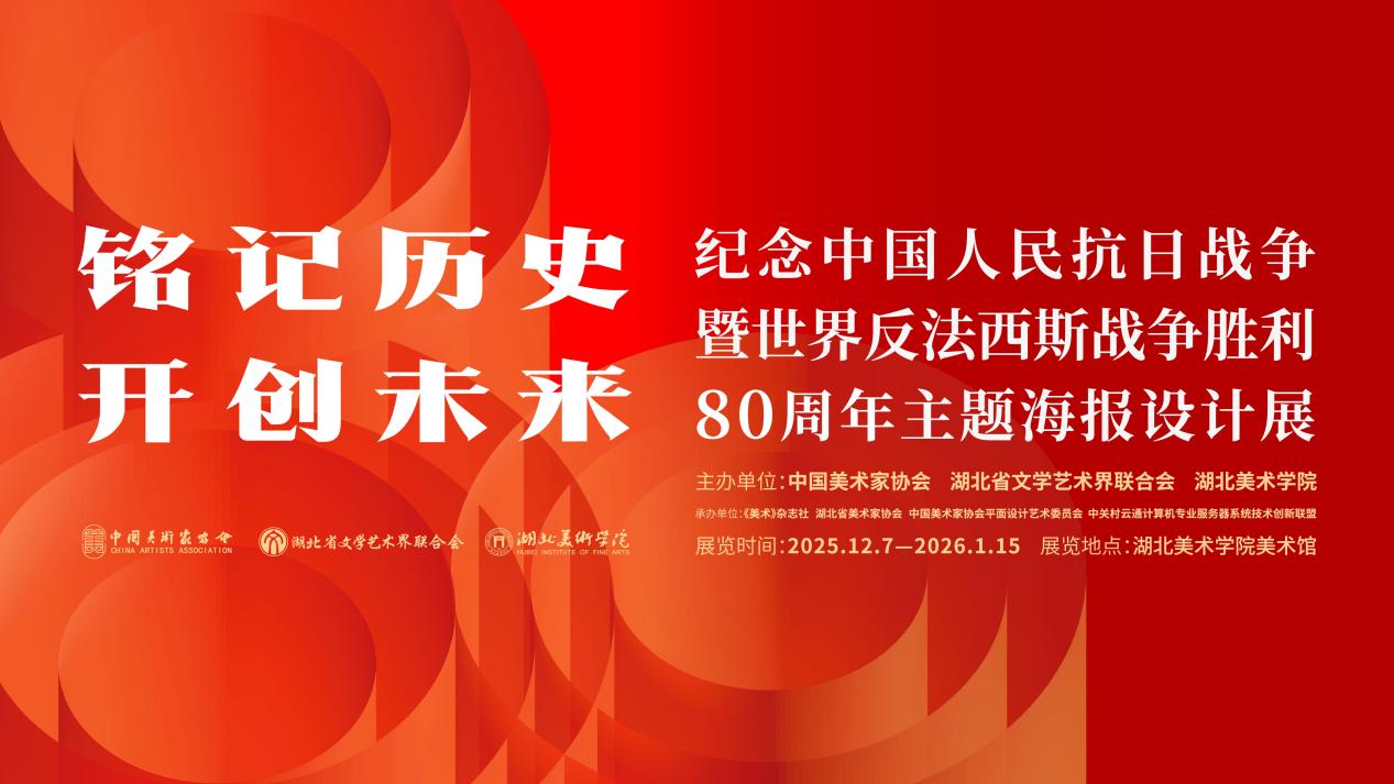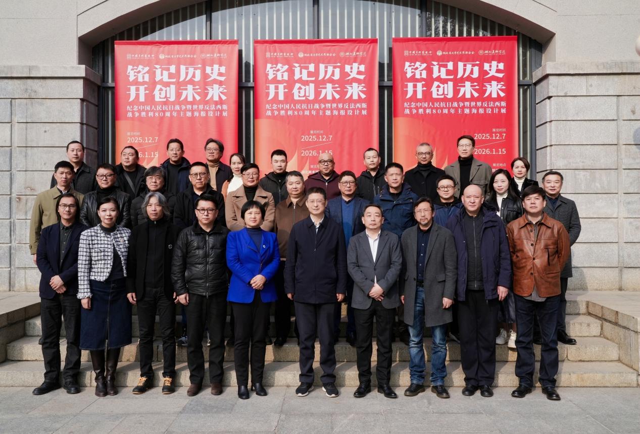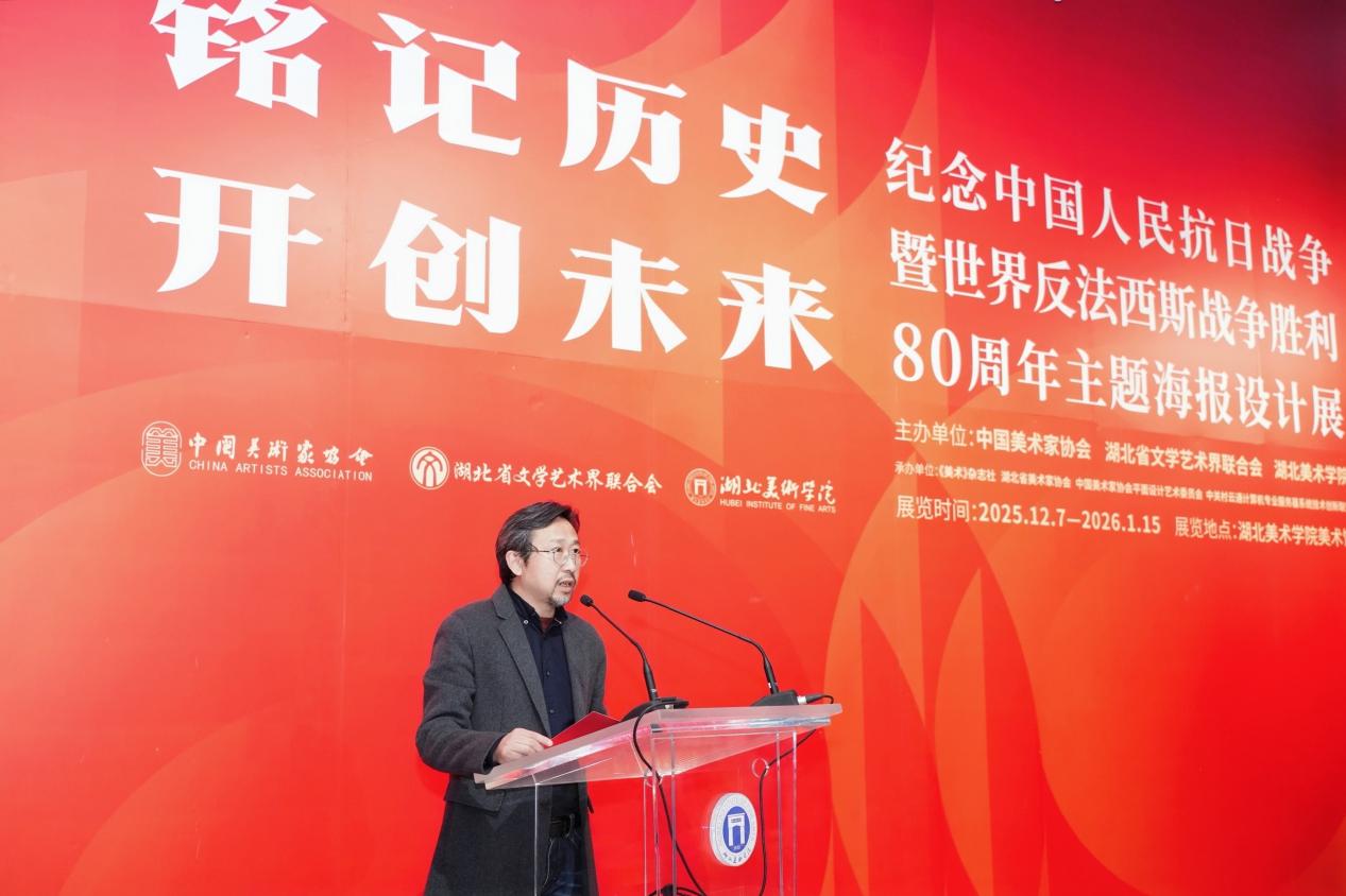 2025年12月9日下午,铭记历史·开创未来——纪念中国人民抗日战争暨世界反法西斯战争胜利80周年主题海报设计展在湖北美术学院美术馆开幕。展览由中国美术家协会、湖北省文学艺术界联合会、湖北美术学院联合主办,《美术》杂志社、湖北省美术家协会、中国美协平面设计艺术委员会、中关村云通计算机专业服务器系统技术创新联盟承办。