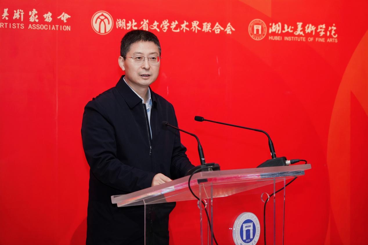 中国美术家协会分党组书记、驻会副主席屈健,中国文联美术艺术中心主任李伟,湖北美术学院党委书记鲍清芬,湖北美术学院党委副书记、院长周峰,《美术》杂志社社长冀鹏程,中国美协平面设计艺委会副主任林存真,中国美协平面设计艺委会委员金贵成,全国设计专业学位研究生教育指导委员会委员、华中师范大学美术学院教授辛艺华,中关村云通计算机专业服务器系统技术创新联盟副理事长剑峰,湖北省美术家协会驻会副主席、湖北省美术院副院长王志新,《美术》杂志社运营总监赵羿然,以及来自中国文联、中国美协、各兄弟艺术院校的嘉宾和参展艺术家、新闻媒体和湖北美术学院师生代表共同出席开幕式。开幕式由湖北美术学院副院长张炼主持。