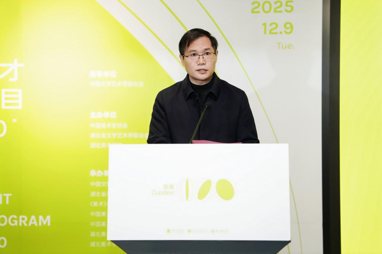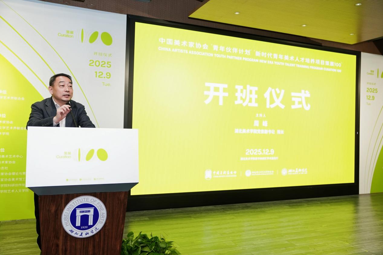 2025年12月9日上午11:30,由中国美术家协会、湖北省文学艺术界联合会、湖北美术学院主办的“中国美术家协会‘青年伙伴计划’‘新时代青年美术人才培养项目——策展100’”在湖北美术学院开班。开班仪式由湖北美术学院党委副书记、院长周峰主持。