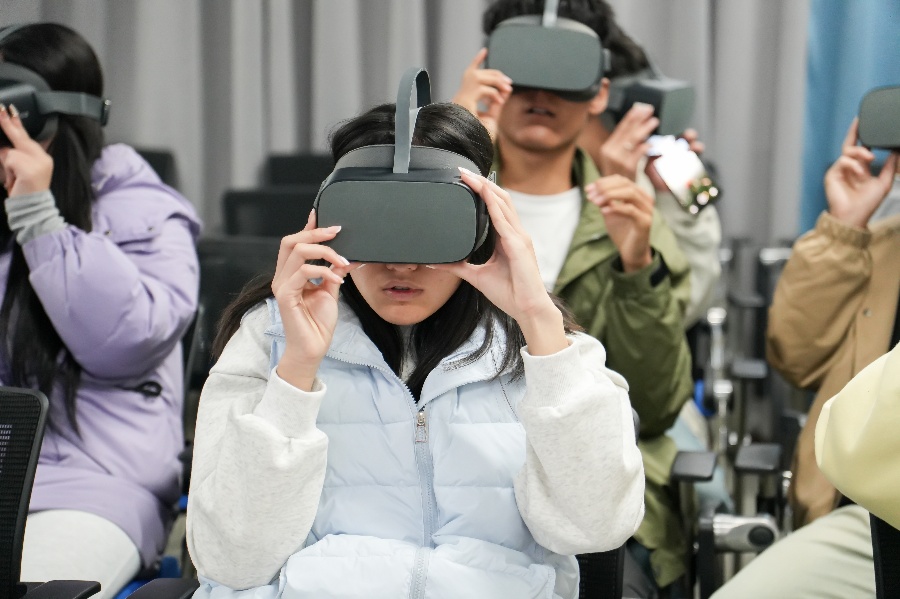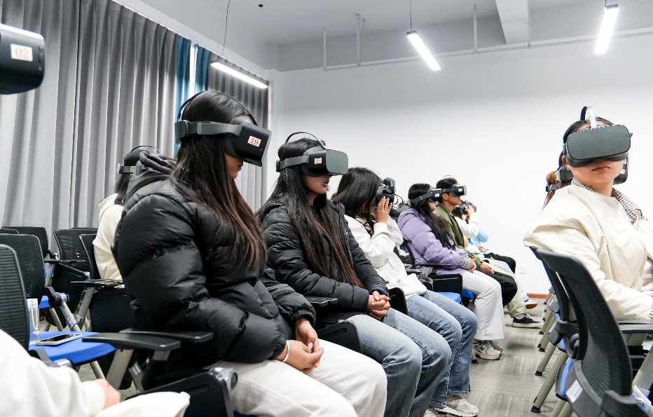 这样的VR体验课还有《党史——抗日战争纪念馆》《强渡大渡河》《新时代成就展》等十余个内容,是学校《思想道德与法治》课程“1+X”体系中重要的一环。在第一课堂教学的基础上,学校持续拓展第二课堂的实践体验,推动思政教学从传统教室走向广阔天地、从校园延伸至社会。通过整合校内现有资源,积极联结社会资源,学校构建起以第一课堂为核心、融合VR体验与校内外多元实践场域的“1+X”立体化教学空间。这一模式使思政课真正“活”起来,实现从“单向灌输”到“沉浸感悟”的转变,让学生在亲身参与中感知理论、在实践体悟中内化价值,切实做到思政教育有形有感、入脑入心。