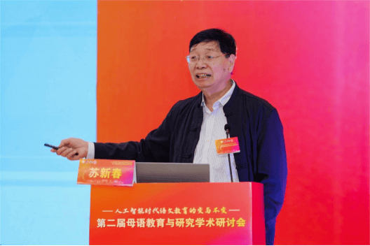 厦门大学苏新春教授以《语文教育对AI赋能的迎接与挑战》为题,深入阐释了AI给语文赋能带来的极大可能性和新任务,从教师的角度提出我们需要准确了解AI、适当使用AI,在利用AI赋能的同时要扮演好“指挥官”的角色,认为AI不能取代语文教育的功能。