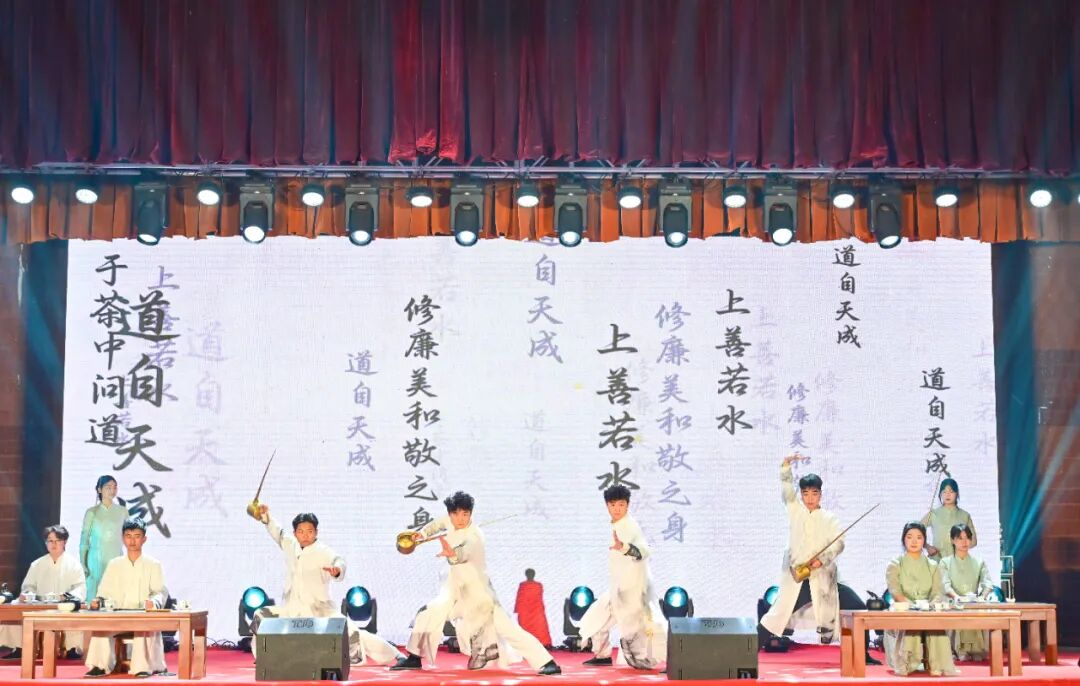 晚会注重传承与创新融合。学校问道茶艺社携手成都市黄英茶艺技能大师工作室带来的《岷水润青城》,展现川茶文化韵味;学校非遗传承人带来的川剧变脸《蜀戏冠天下》,一招一式尽显非遗魅力;团委秘书处礼仪队、华韵国风协会与动漫社共同合作的走秀《向光而行》,巧妙融合传统服饰、国风元素与现代动漫文化。