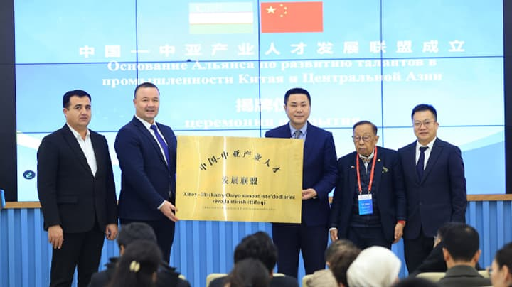 当地时间2025年12月20日,中国—中亚产业人才发展联盟(英文简称:CCAIT)在乌兹别克斯坦塔什干INNO TechnoPark揭牌。联盟作为中国职业院校“双高计划”国际化延伸的战略实践,深度契合“中国—中亚精神”,以“政校企协同、产学研贯通”的国际合作闭环,破解中资企业属地化用工瓶颈,助力中亚构建现代产业人才体系,成为服务大国外交、推动构建中国—中亚命运共同体的重要纽带。