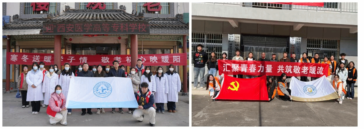同时,西安医专师生们积极参与“倡树敬老新风”、“弘扬孝亲敬老美德”等主题活动,在九峰镇等地开展健康义诊,将专业技能与人文关怀相结合,既守护了老年群体的健康,也传承了尊老敬老的传统美德。