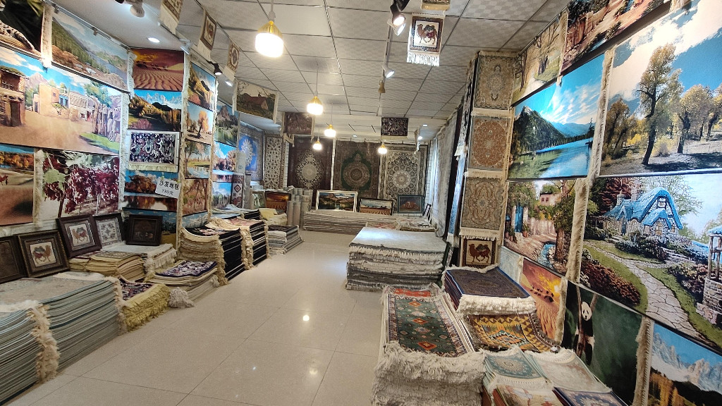 和田约特干古城遗址里,中原的铜钱、波斯的玻璃器、罗马的珠子静静陈列,实践团成员在讲解员的带领下,探寻古代和田作为多元文明交汇之地的繁华,印证各民族交往交流交融的悠久历史。不远处的和田团城街区,传统维吾尔建筑与现代生活完美融合:维吾尔族的木雕、地毯与汉族的书画、茶艺相映成趣,烤包子的浓香与茉莉花茶的清香交织弥漫。看到地毯店里祖国大好河山、民族特色文化与先进人物画像共同绘就的图案,成员们不禁感慨,这便是文化交融最美的模样。