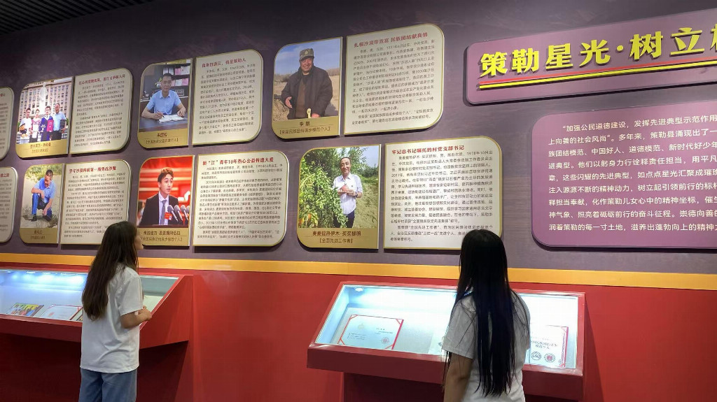在策勒县铸牢中华民族共同体意识主题教育馆,旧貌换新颜的发展对比、波澜壮阔的奋斗历程、感人至深的先进事迹,无不印证着各民族团结奋斗的力量。那些闪耀的民族团结进步模范、道德模范,如点点星光汇聚成璀璨星河,照亮了共同前行的道路。