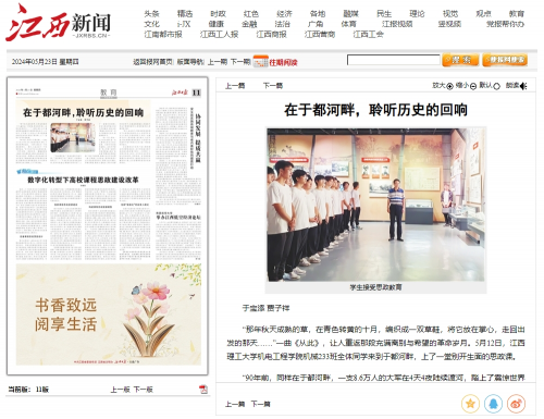 强化思想引领聚焦信念铸魂,激发红齿轮向心力。严格落实思政第一课制度,学院党委书记积极开展主题党课,为广大师生筑牢信仰之基;开展形式多样的主题党团日活动,组织学生赴于都、瑞金等地研学,在实地体验中传承红色基因;邀请全国劳模等模范人物走进校园,让学生在持续的熏陶与激励下,逐步成长为满怀家国情怀与担当的新时代青年。学院“行走的思政课”受到新华网、江西日报等媒体点赞。