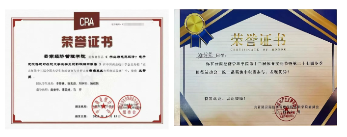 进入云经管市场营销专业后,姚程然很快感受到了学校的魅力。他像母亲许艳当年一样积极向上,一口气加入了羽毛球社、智趣童心社、茶艺阁、MMS模型艺术社4个社团,还参与了志愿服务、青马班、一院一品等特色活动,更在正大杯、三创赛、翰文杯等创新创业赛事中斩获省级三等奖,综合素养稳步提升。