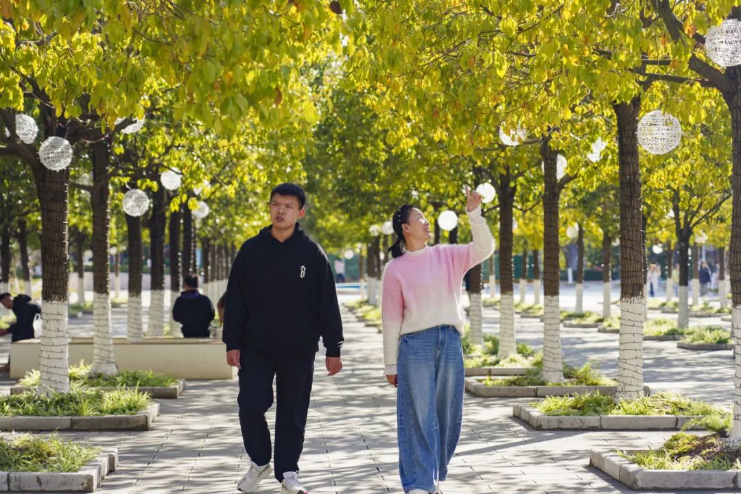 并肩漫步校园、定格合影