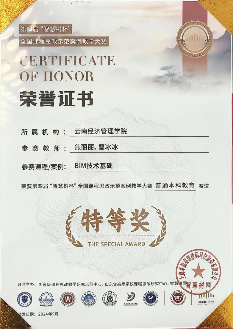 ▲建筑工程学院教师焦丽丽、曹冰冰在第四届“智慧杯”全国课程思政示范案例教学大赛中斩获特等奖