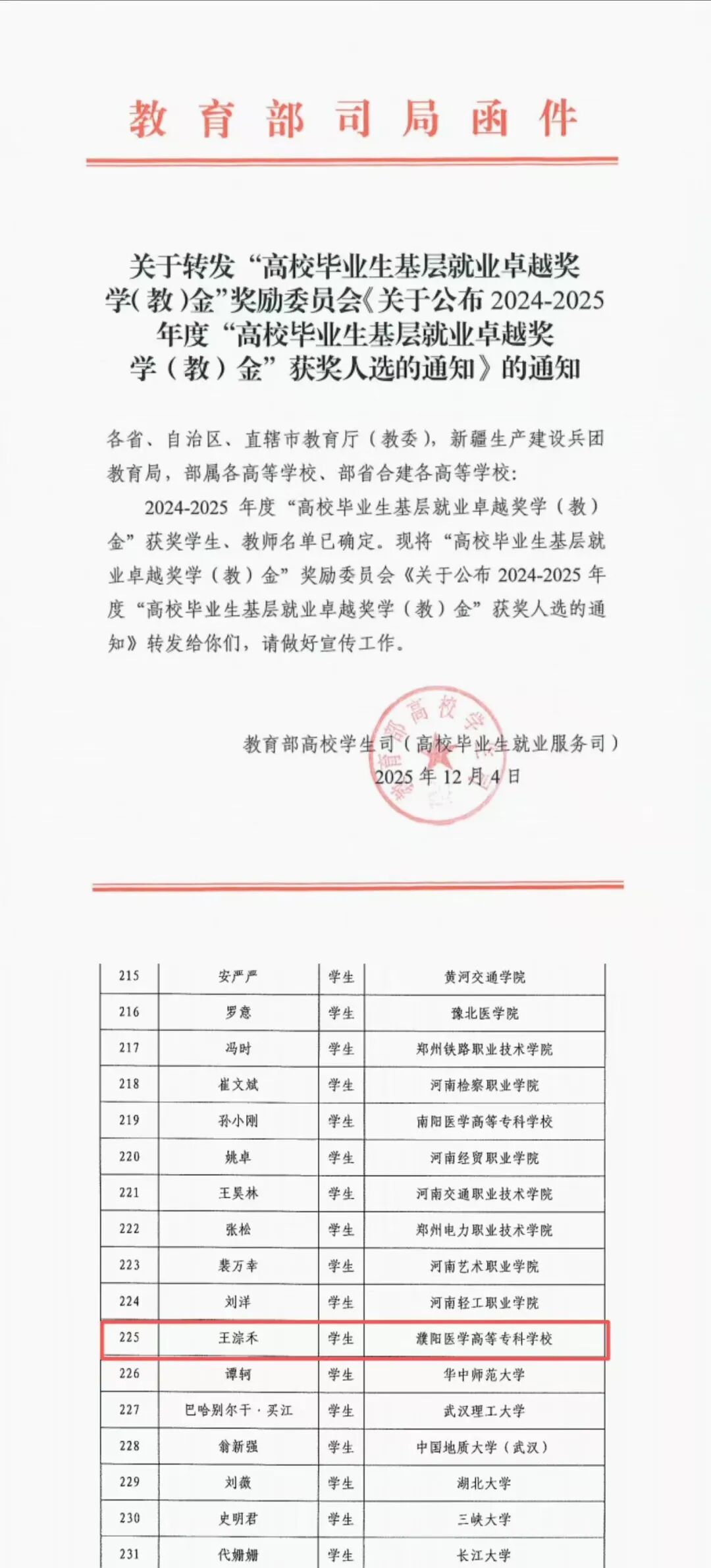 毕业生高质量就业捷报频传,2022届毕业生王淙禾获评2024-2025年度高校毕业生基层就业卓越奖学(教)金。5名毕业生成功入职河南省人民医院;2名2025届毕业生成功入职郑州市妇幼保健院。