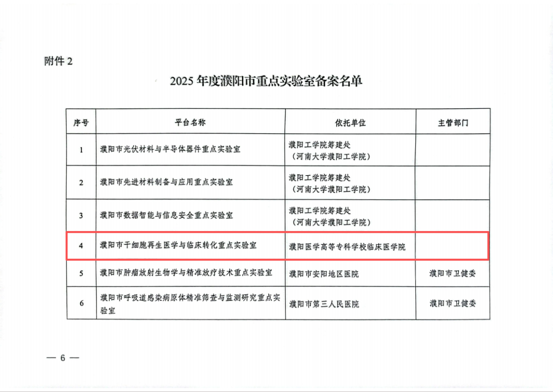 濮阳市干细胞再生医学与临床转化重点实验室获批濮阳市重点实验室。