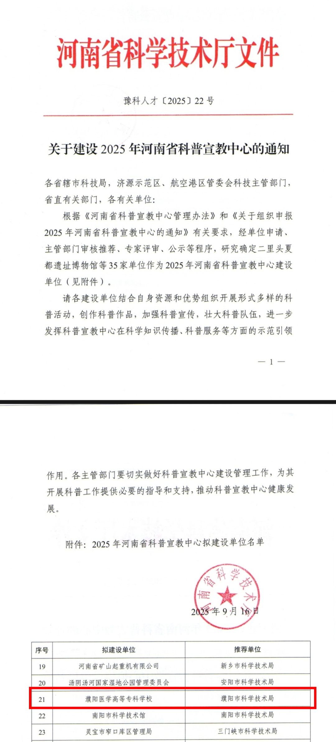 学校成功获批“河南省科普宣教中心”