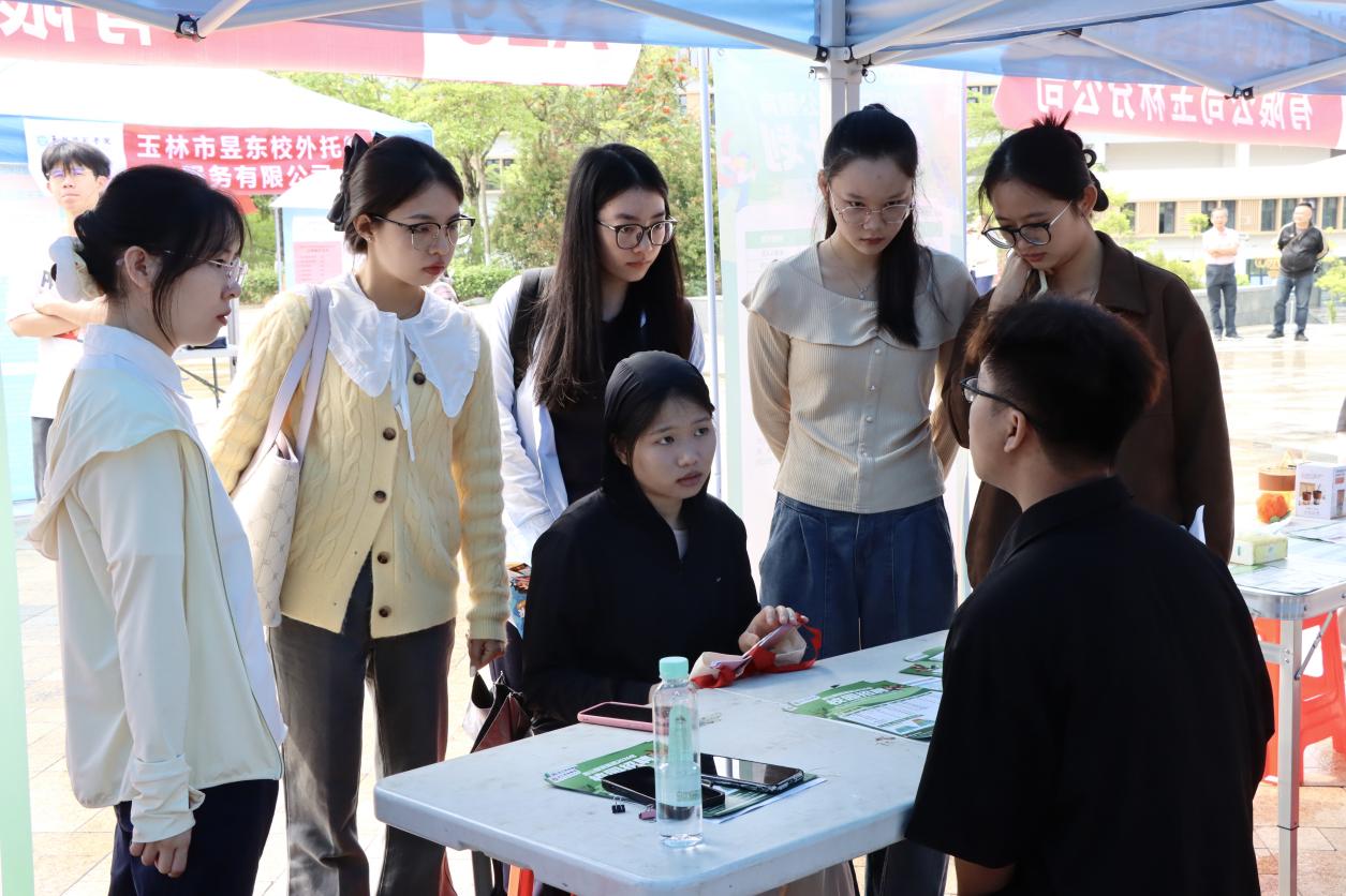 为深入贯彻落实教育部“春季促就业攻坚行动”部署要求,全力促进2026届毕业生高质量充分就业。4月24日,玉林师范学院2026届高校毕业生“春季促就业攻坚行动”暨春季综合类就业双选会在东校区读书广场隆重举行,活动以“筑梦青春职启未来”为主题,同步开展“玉汝于成师展芳华”就业嘉年华系列活动。